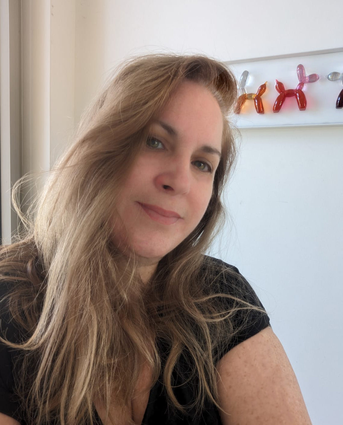 המסע שלי אל עולם היצירה התחיל ממש בילדות, עם זיכרון קסום וברור אחד: היו לנו בבית, על המזנון של ההורים, שני פסלי זכוכית של תרנגולים. הם היו צבעוניים ושקופים, ואני זוכרת איך הייתי מסתכלת עליהם שעות. פשוט התמוגגתי מהשקיפויות, ממשחקי האור והצבע, ומהתחושה המיוחדת הזו שהם יצרו בי. משהו בזכוכית הזו, ובקסם שלה, משך אותי אז באופן שלא יכולתי להסביר. שם, ממש בילדות, נולדה בי תשוקה עמוקה לצבעים, לחומרים שקופים ולכל מה שיוצר בעיניי קסם ופליאה.