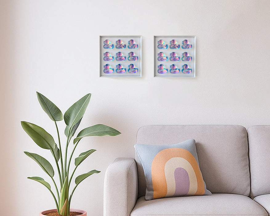 הברווזים יכניסו שמחה, צבע וקסם לכל פינה בבית, במשרד או בכל חלל שתבחרו (אפילו בחדר האמבטיה). קישוט קיר ייחודי זה הוא פריט אמנות מקורי שיתאים נפלא לעיצוב הבית שלכם ויגרום לכולם לחייך.
