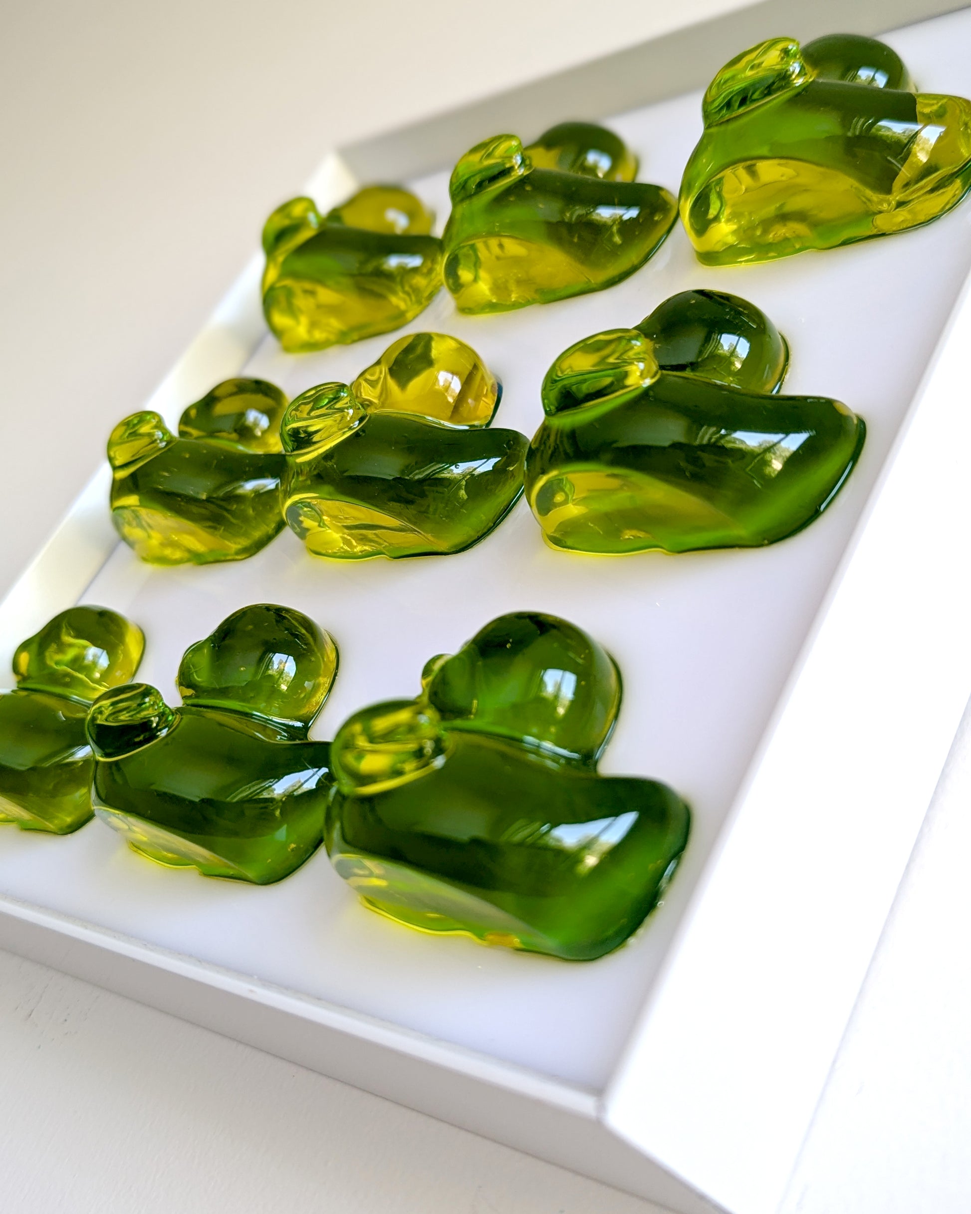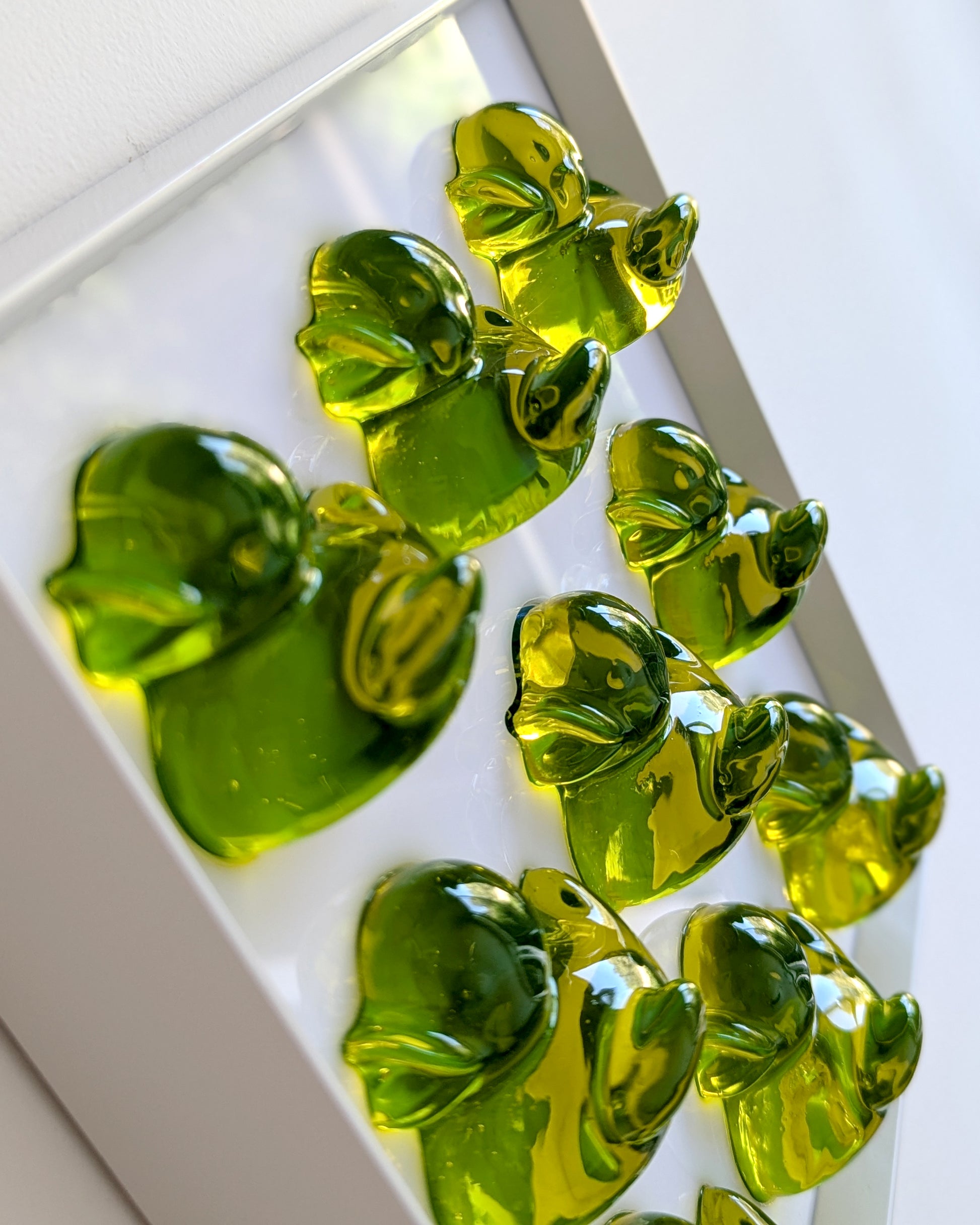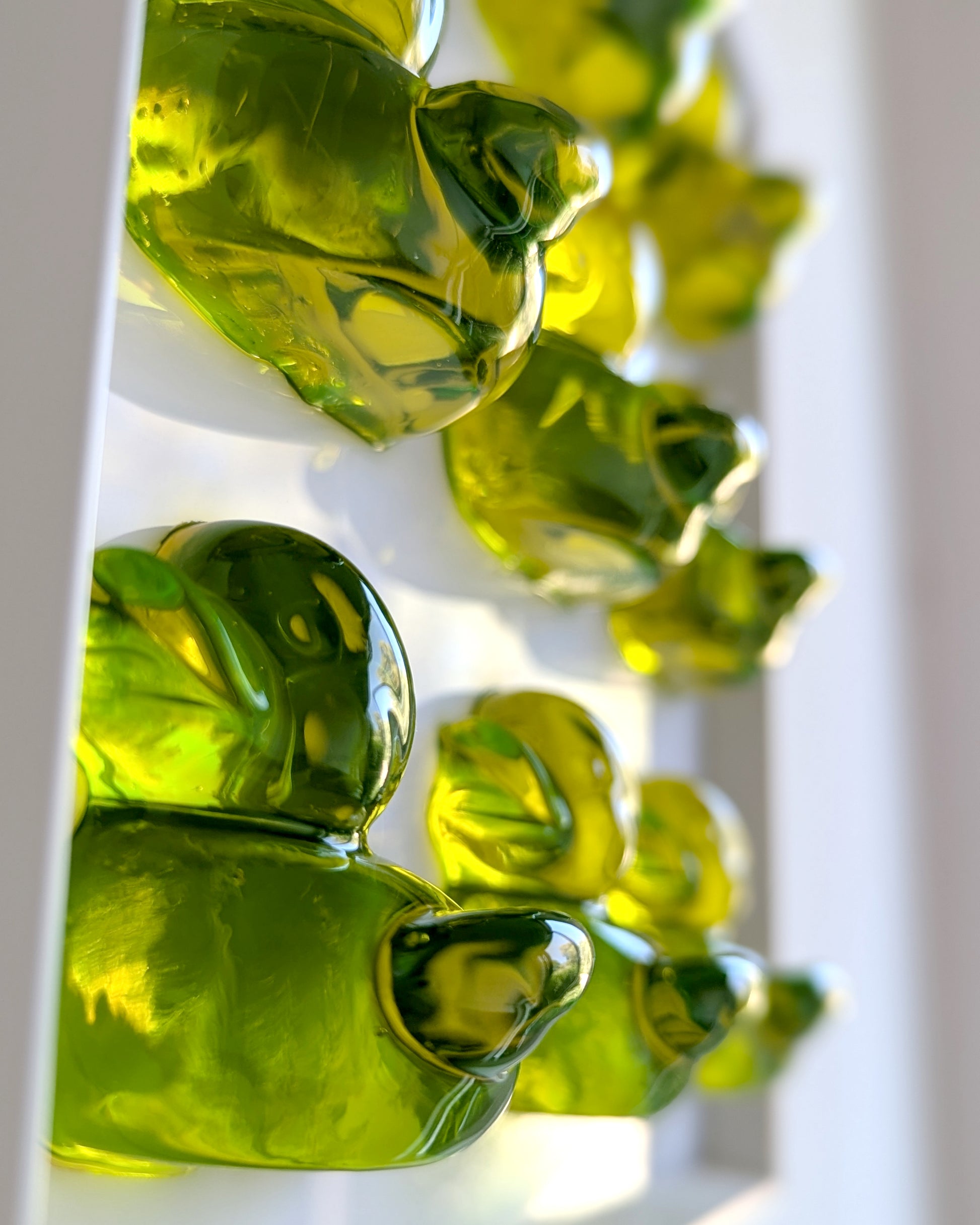 יצירה תלת מימדית לקיר, שנוצרה בטכניקה מיוחדת, מגיעה עם גימור הולוגרפי ירוק צהוב שמשחק עם האור. הצבעים משתנים בעדינות כשעוברים לידה – יופי שאי אפשר להפסיק לבהות בו!
