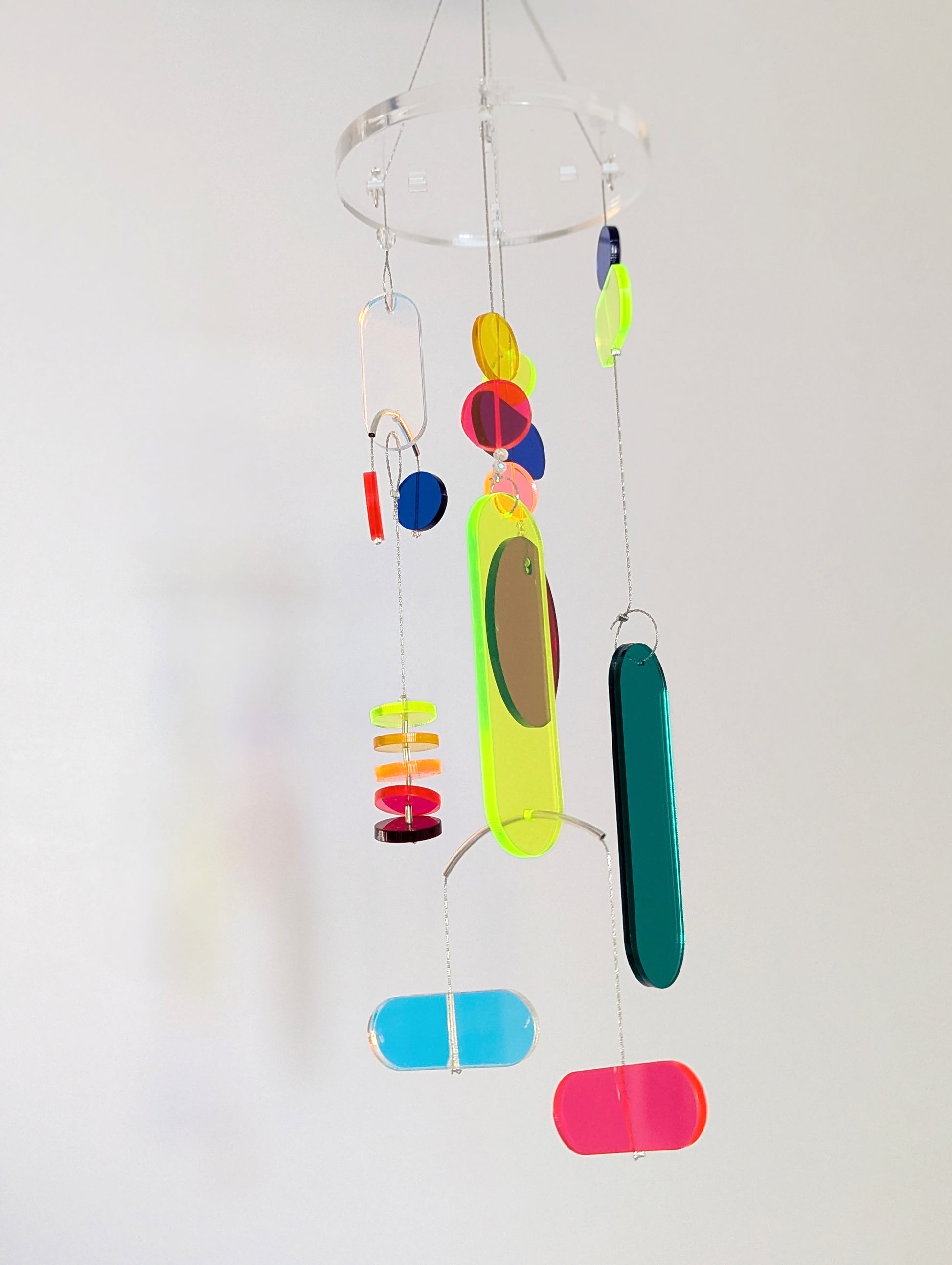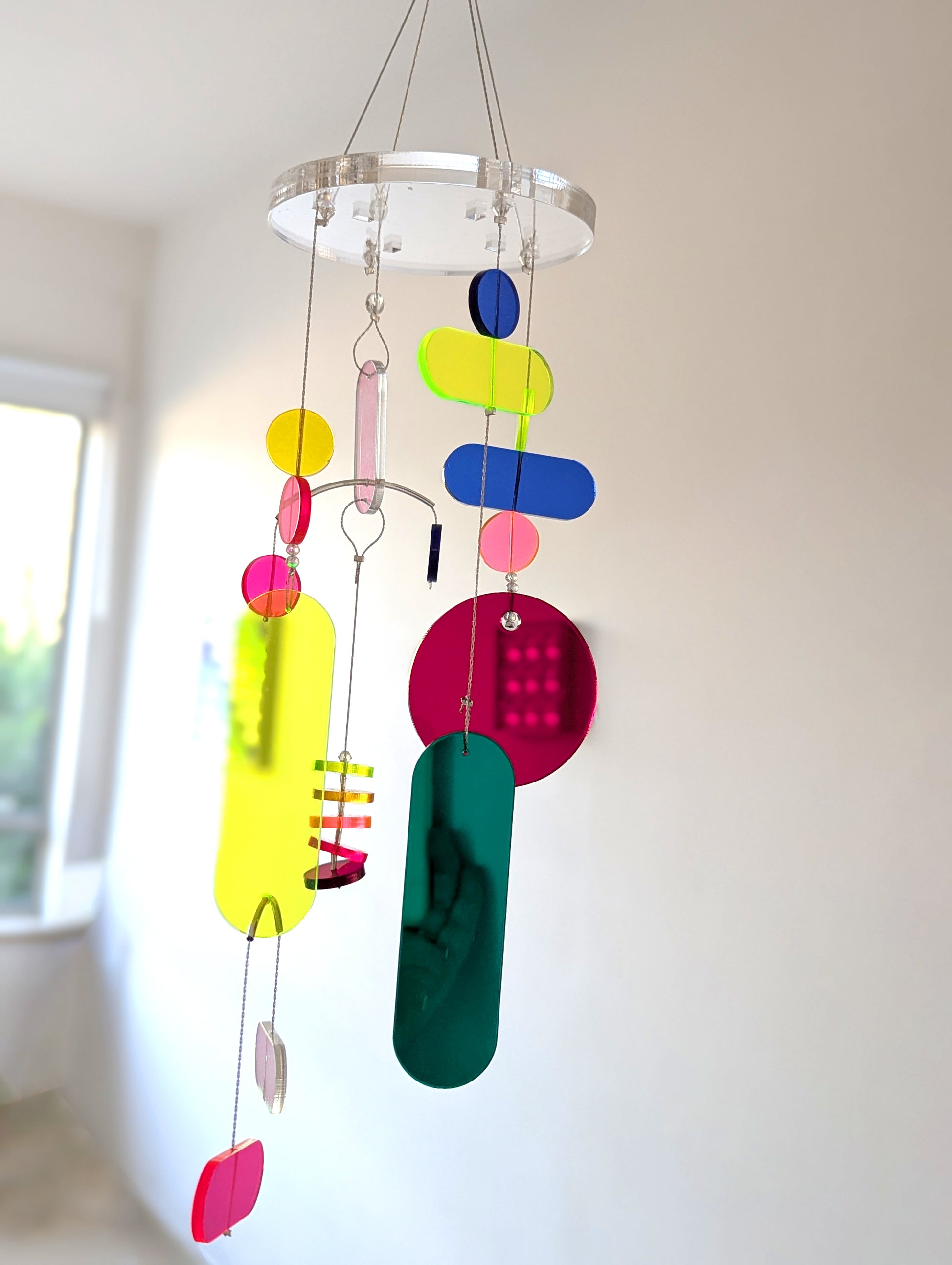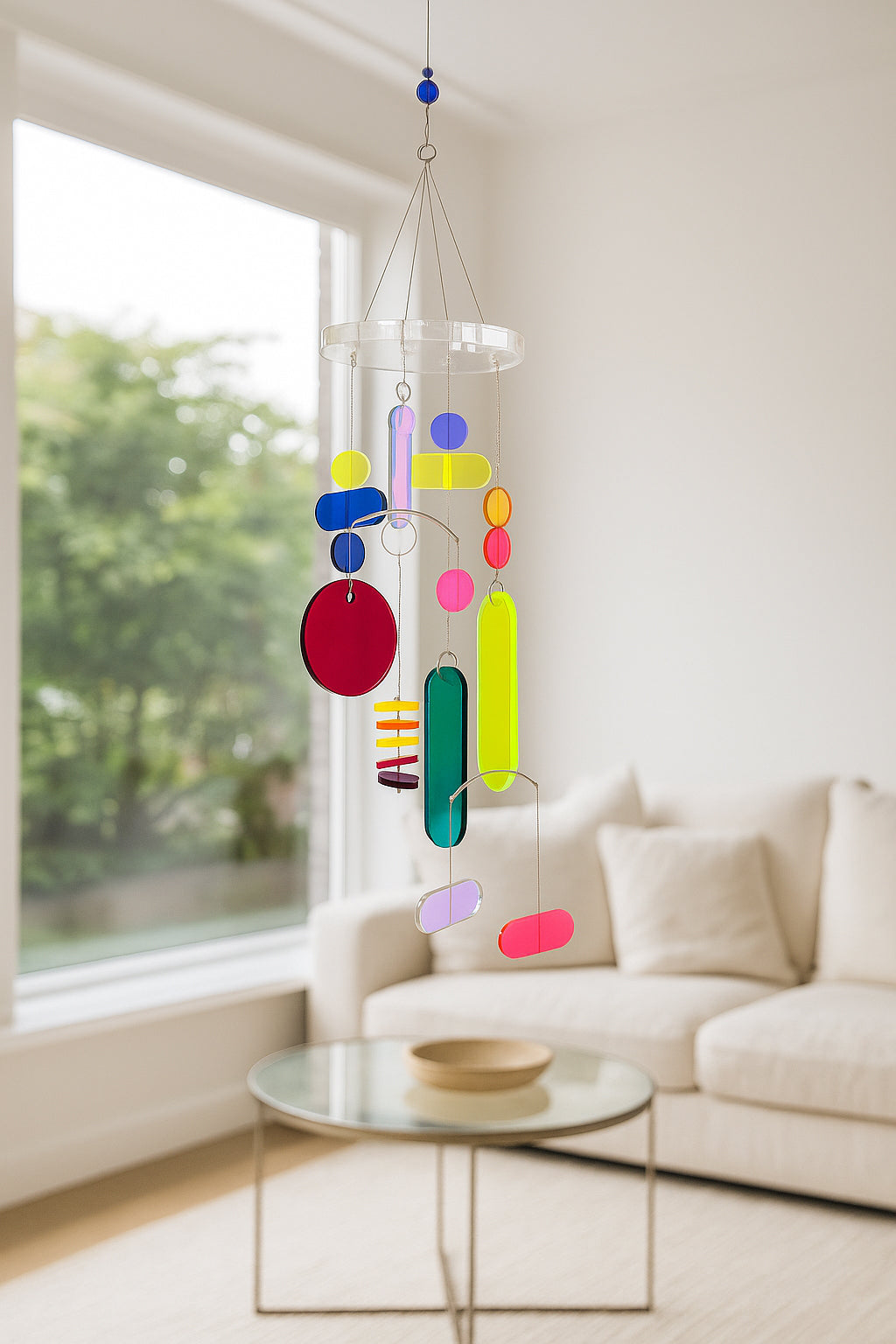 ריקוד של צבע וצורה. מובייל דינמי שובה את העין ומעורר השראה.
