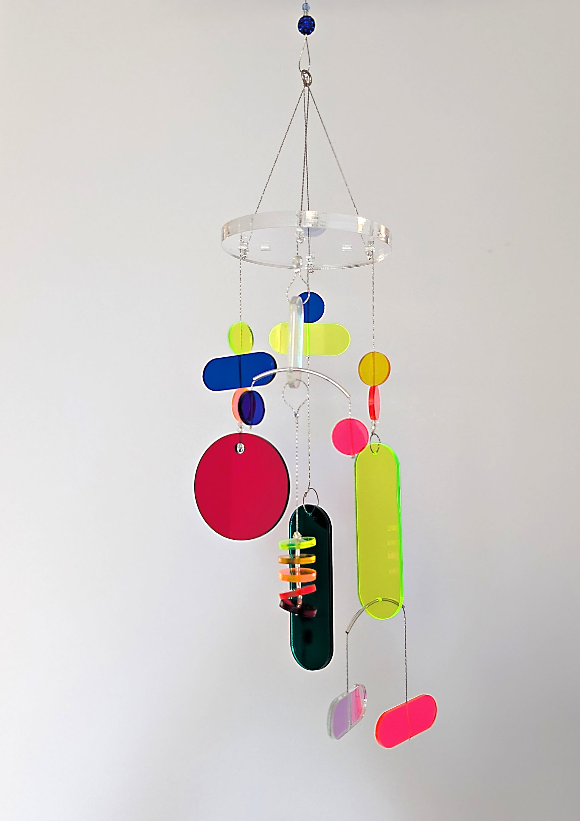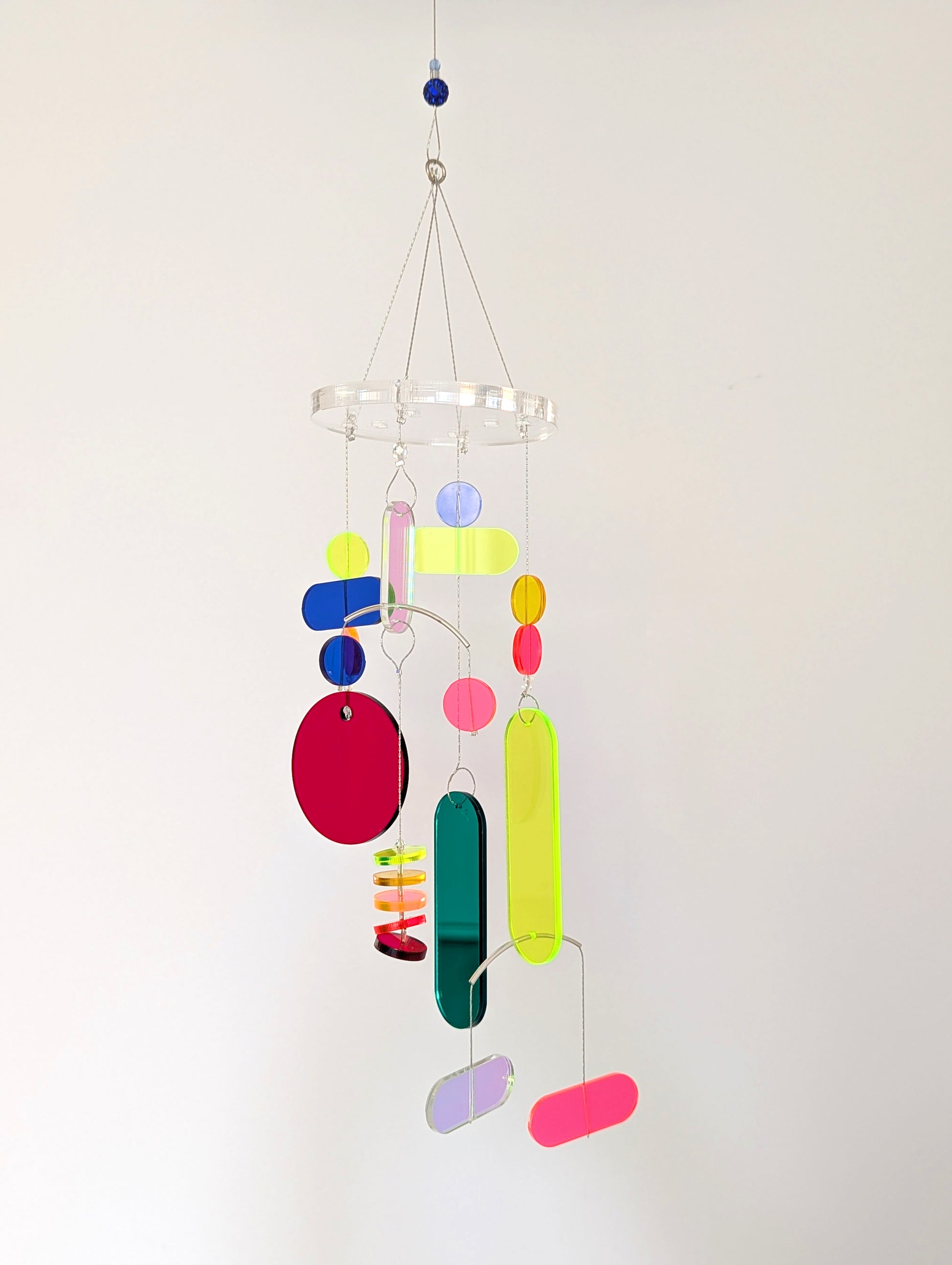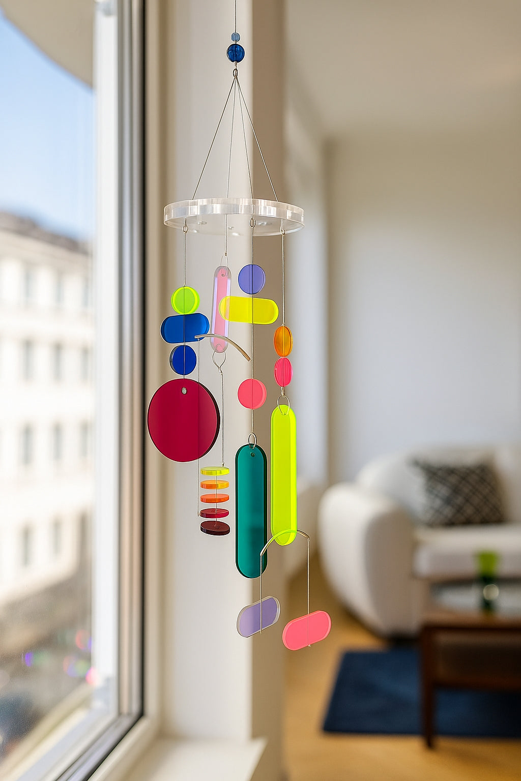 ריקוד של צבע וצורה. מובייל דינמי שובה את העין ומעורר השראה.