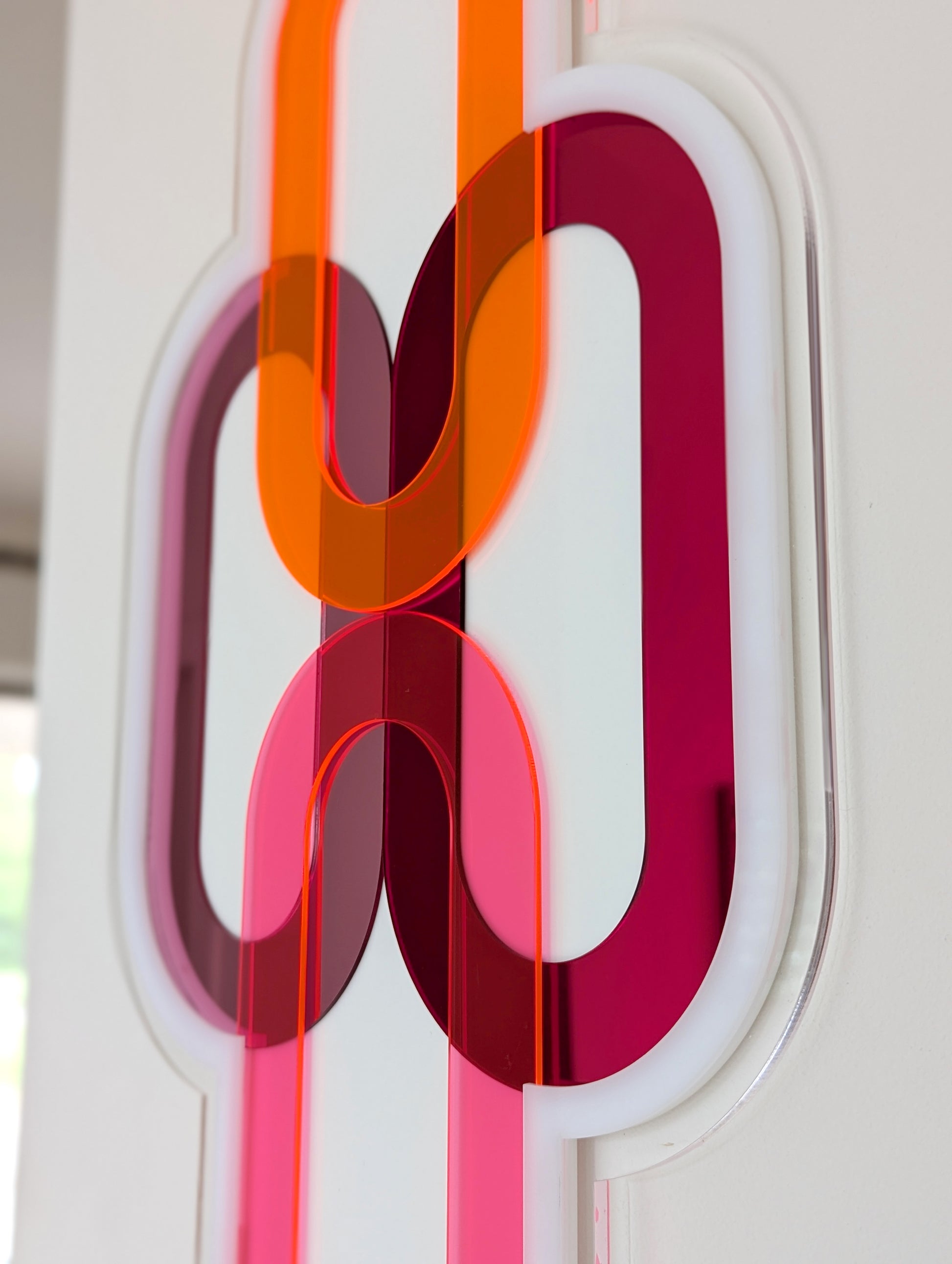 אובייקט עיצובי עכשווי, שנוצר משכבות מוקפדות של פרספקס. הקומפוזיציה נולדה מתוך חקירה אמנותית של שקיפות, צבע, השתקפויות ועומק.