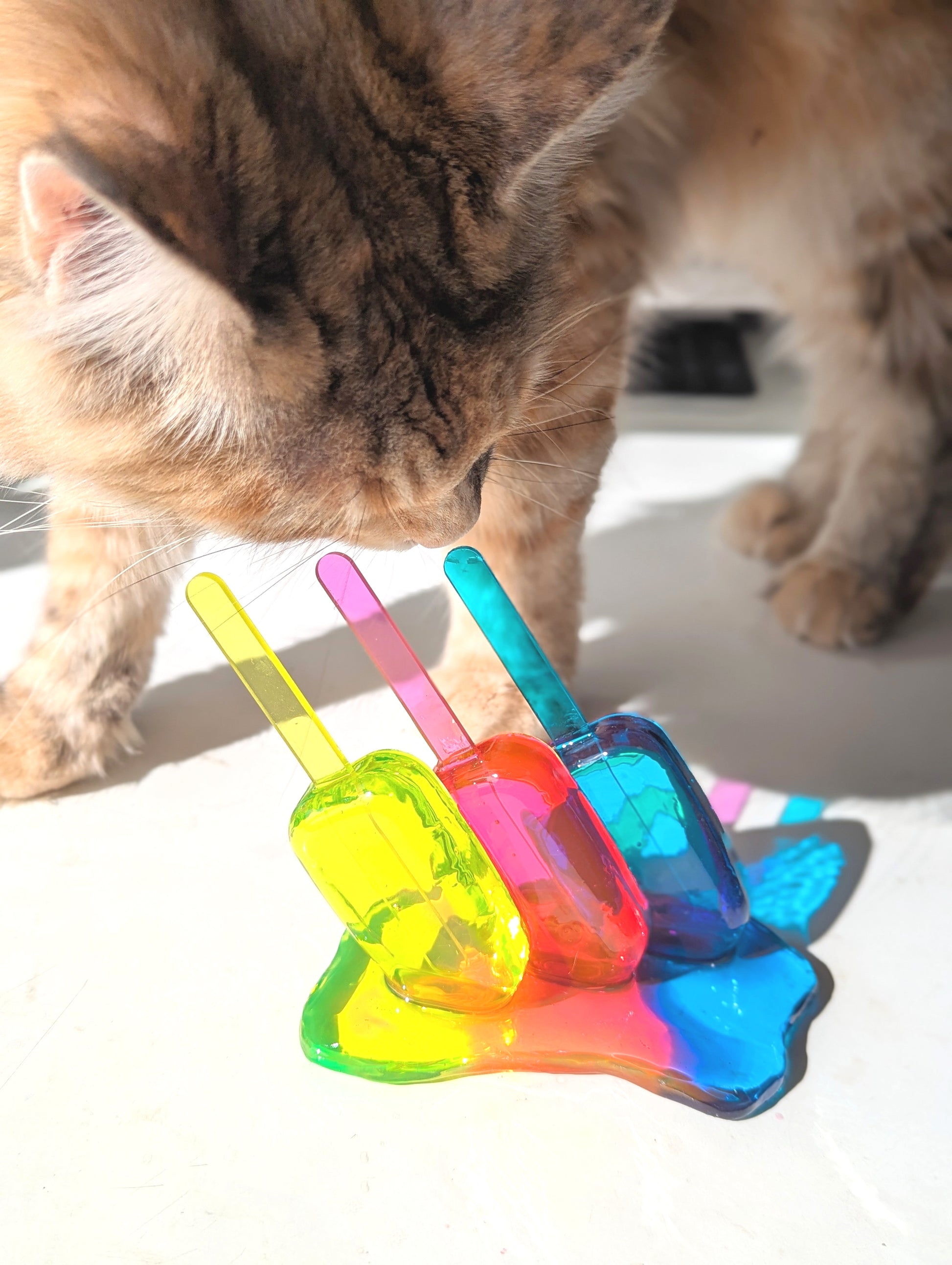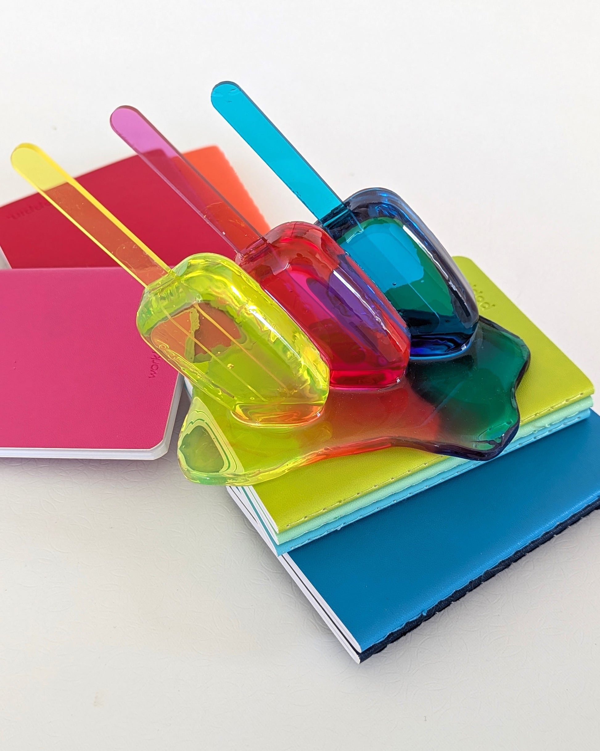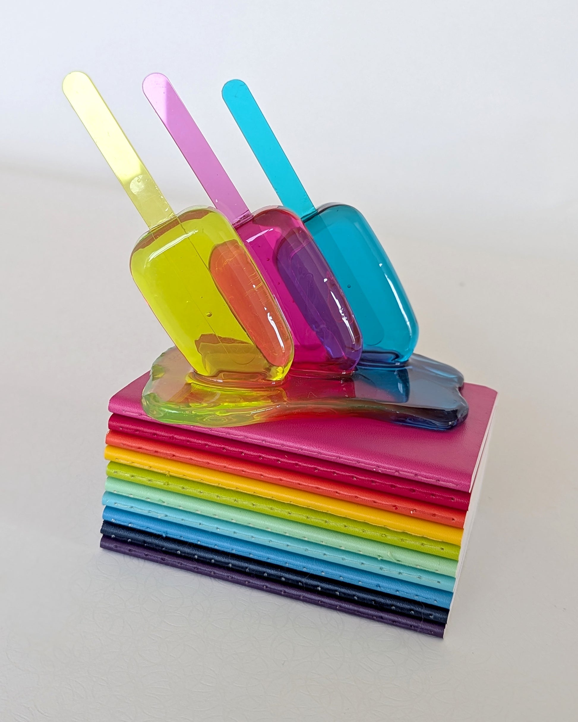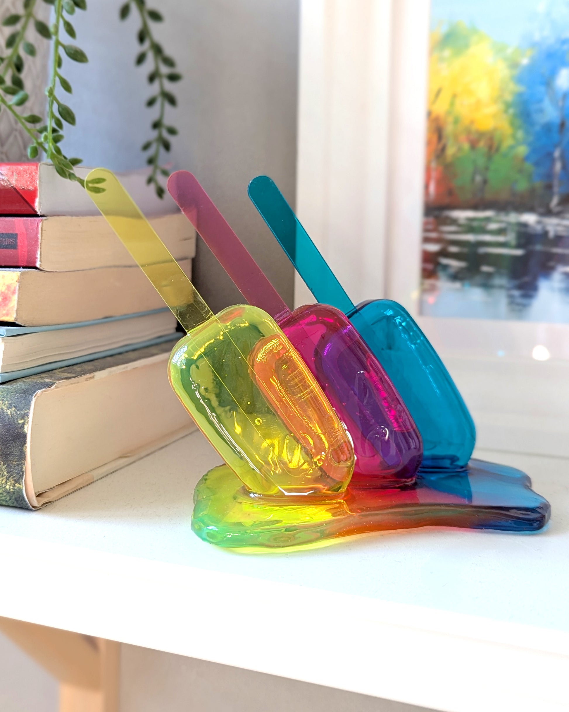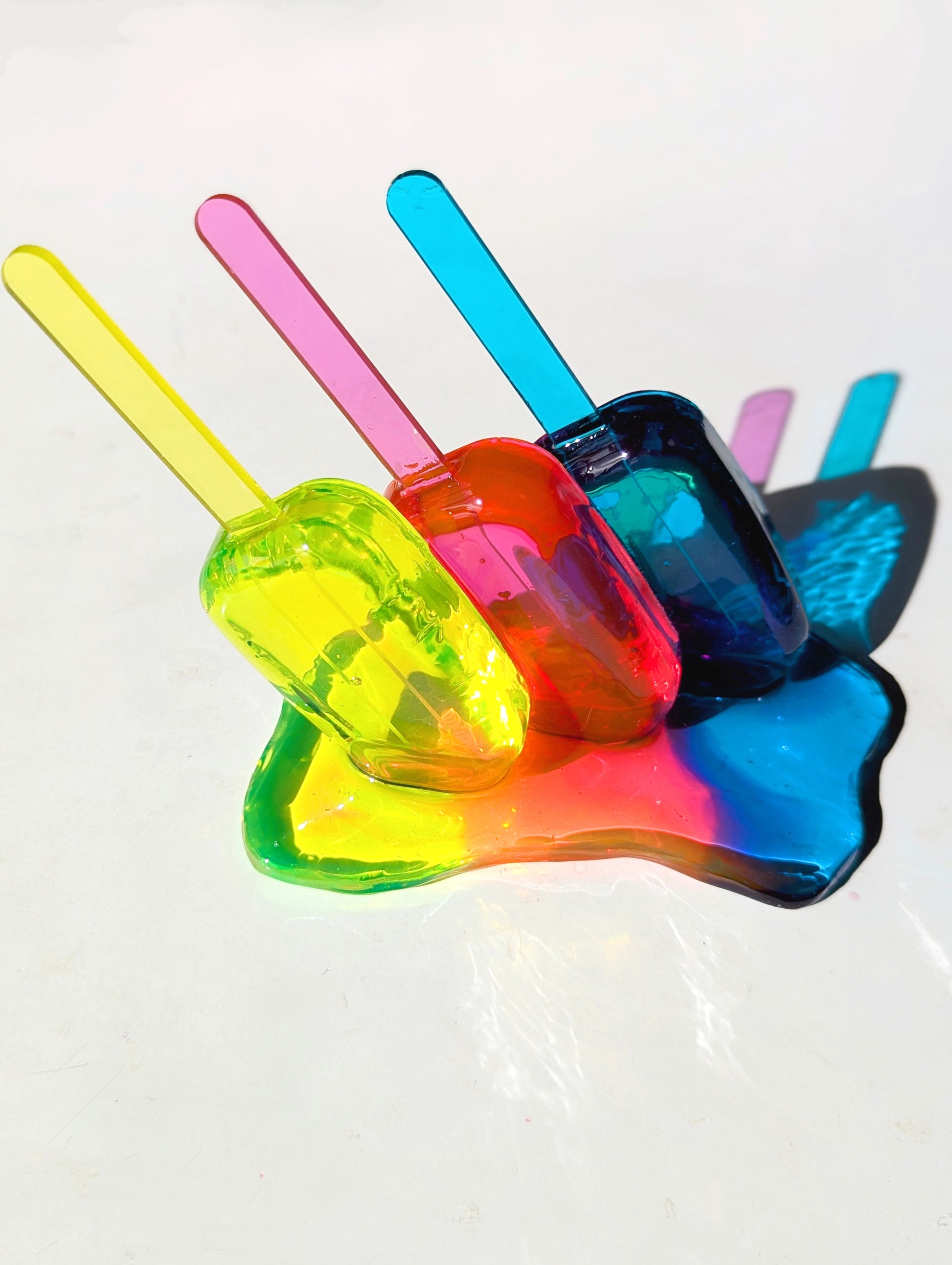 תארו לעצמכם את החום של הקיץ, את המתיקות של הארטיק שנמס לאט לאט, ועכשיו דמיינו את זה – באמנות! 'הארטיקים הנמסים' – יצירה תלת-ממדית שובבה ומלאת חיים, של שלושה ארטיקים צבעוניים ושקופים, שכאילו נמסים ויוצרים שלולית צבעונית ובוהקת מתחתם. דרך מקורית להכניס אמנות שובה לב, קרירות ושמחה אינסופית לעיצוב החלל שלכם. פריט אמנות מקורי שיוסיף טוויסט מתוק ורענן.