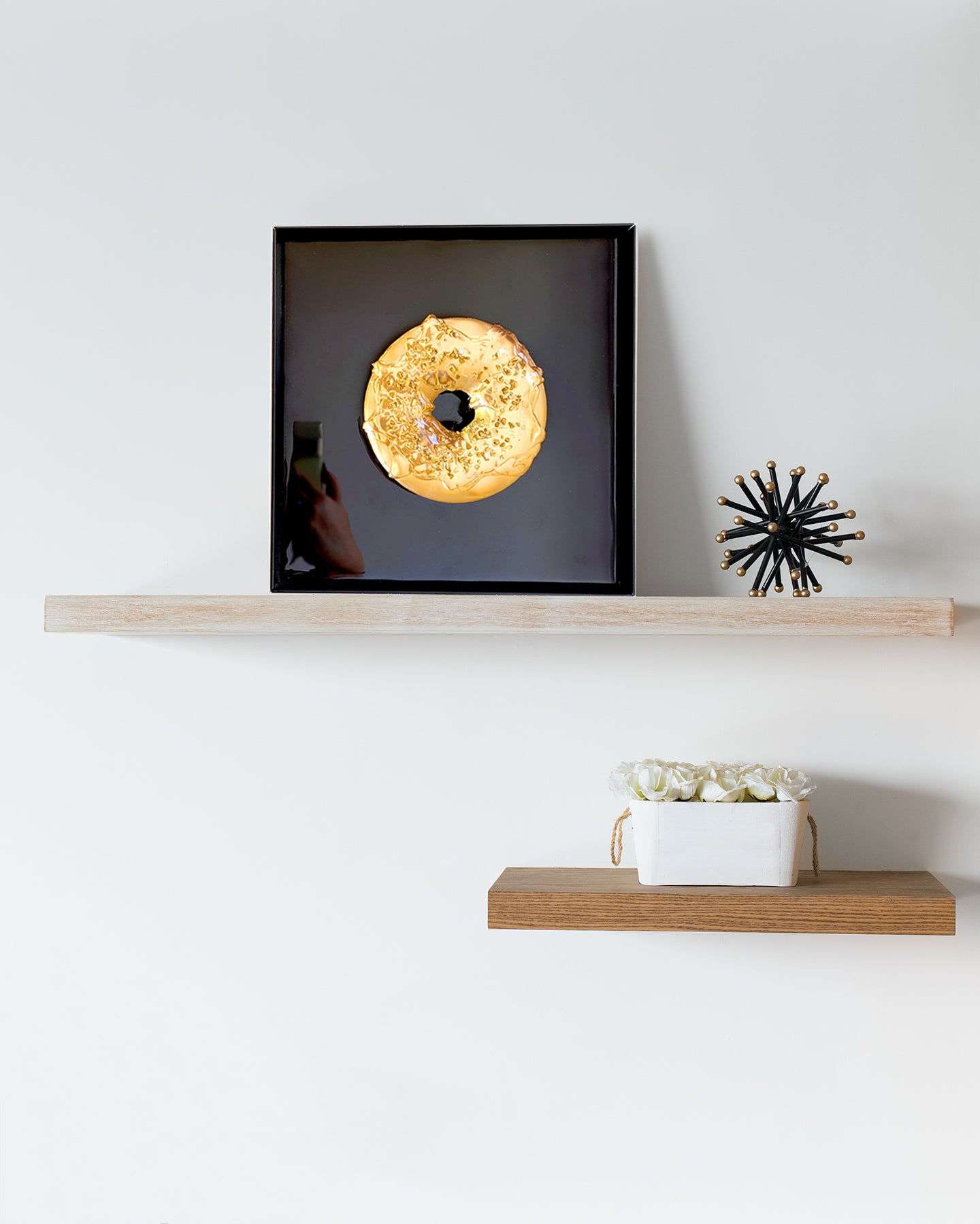 אוהבים דונאטס אבל מעדיפים לוותר על הקלוריות? יצרתי בדיוק בשבילכם את 'דונאט הזהב' – יצירת אמנות מתוקה ויזואלית שתגרום לכם לחייך. הדונאט הזהוב, ניצב באלגנטיות על רקע שחור עמוק, ויוצר ניגוד דרמטי ומהפנט. הוא מתוק ושובב, ועם זאת אלגנטי ובעל נוכחות קלאסית, מה שהופך אותו לפריט עיצובי על-זמני. זוהי חוויה ויזואלית שפשוט אי אפשר להפסיק לבהות בה. קישוט קיר ייחודי ופריט אמנות מקורי שיוסיף נגיעה של שמחה ואלגנטיות נוצצת לעיצוב החלל שלכם.
