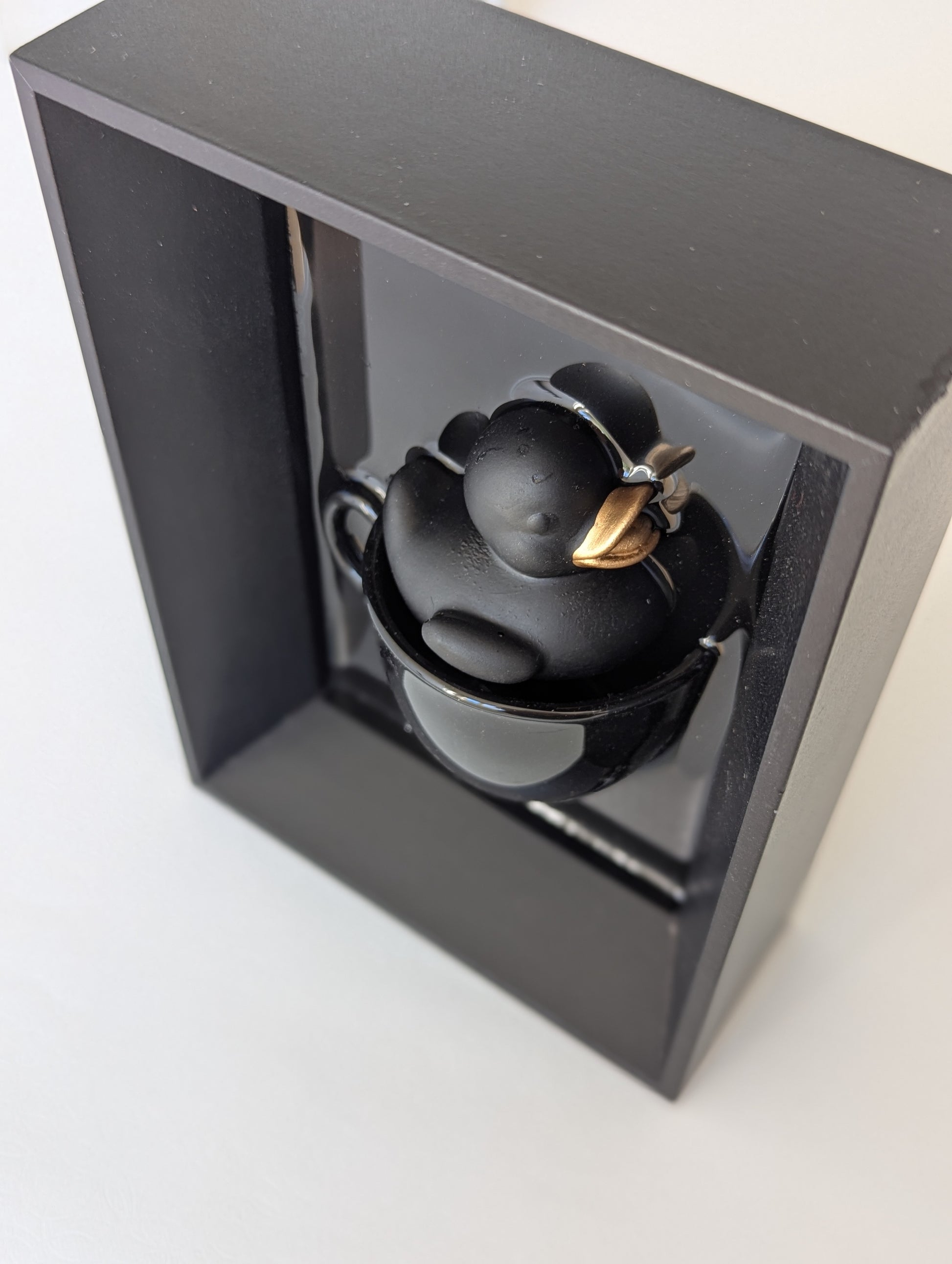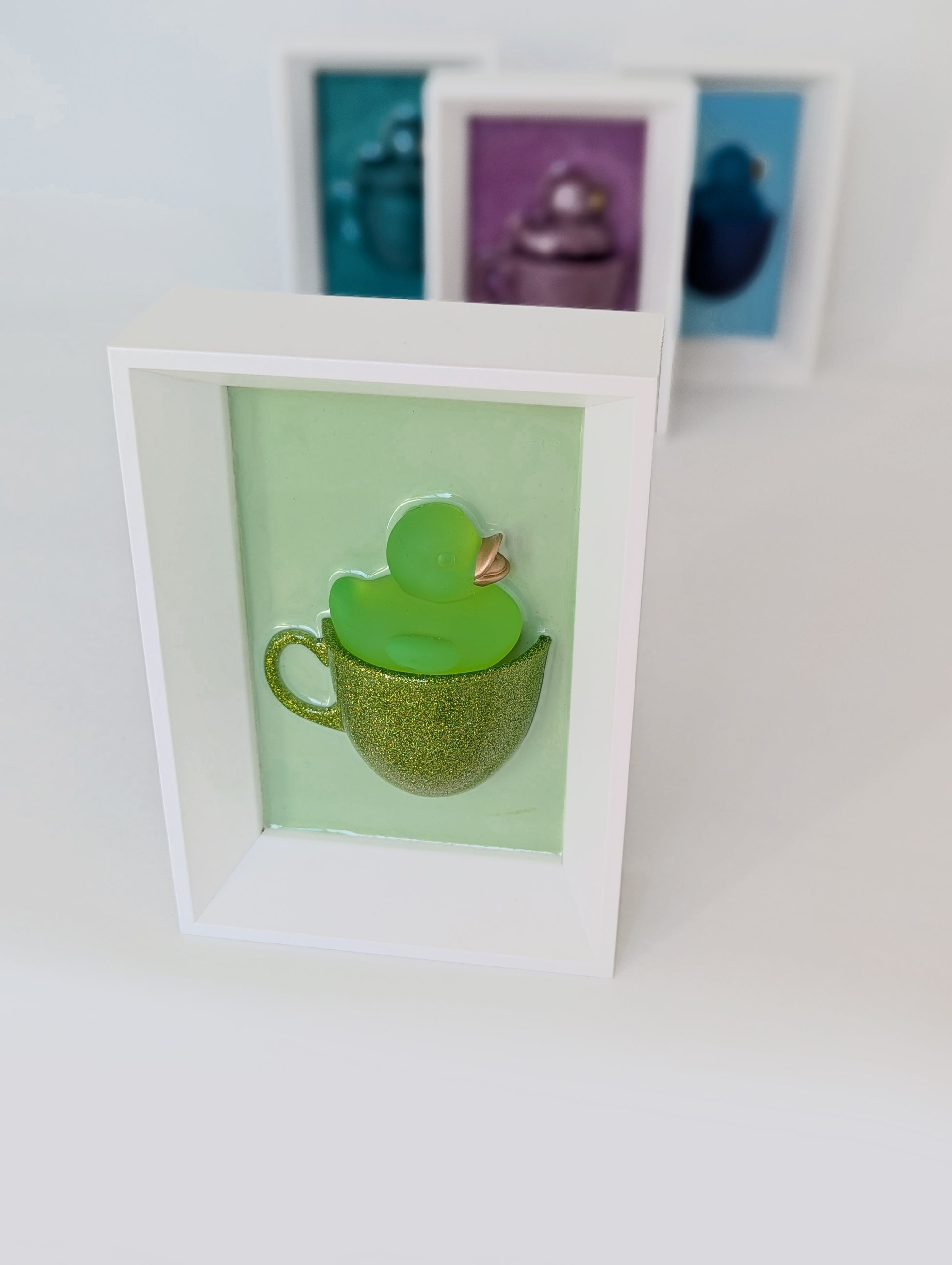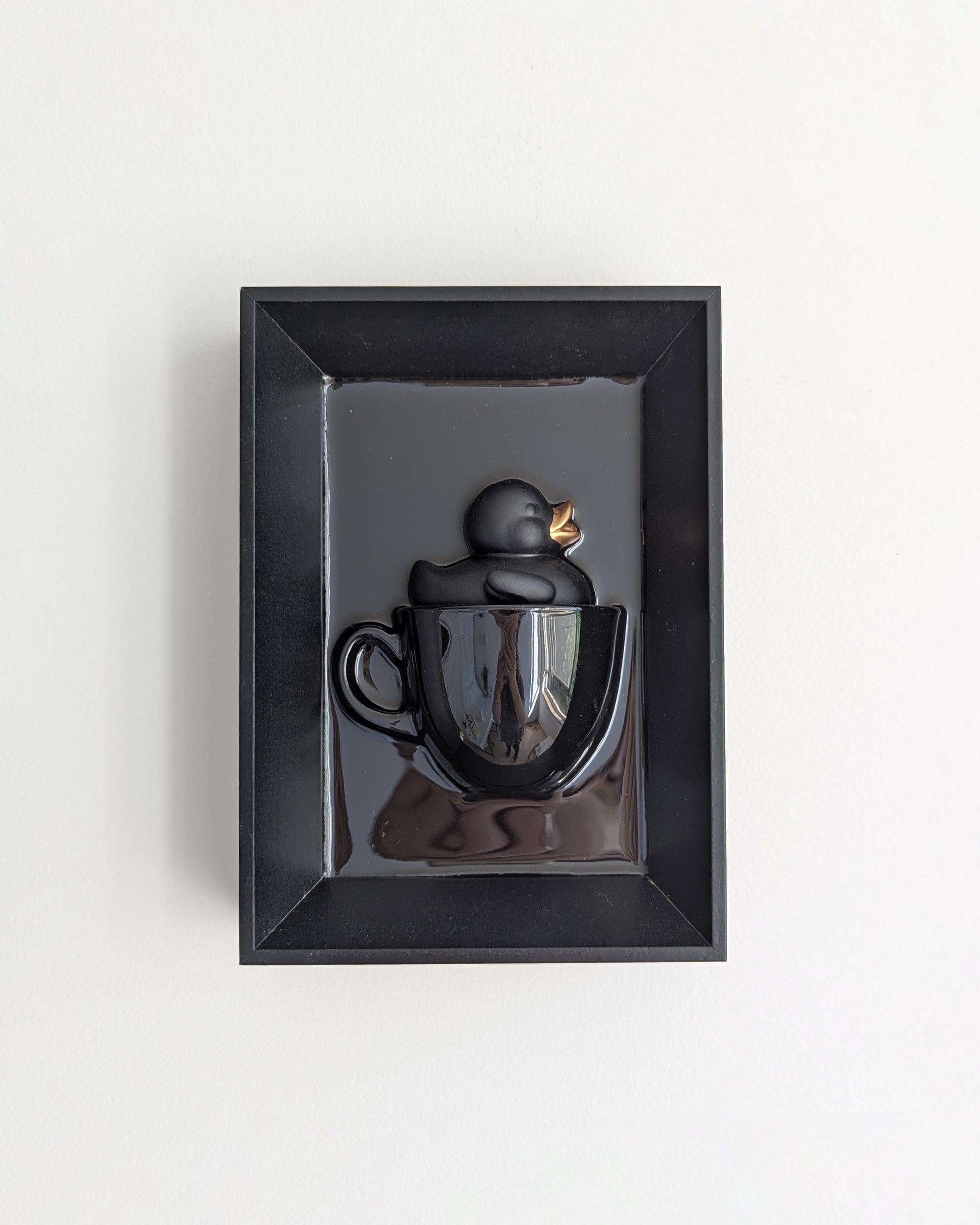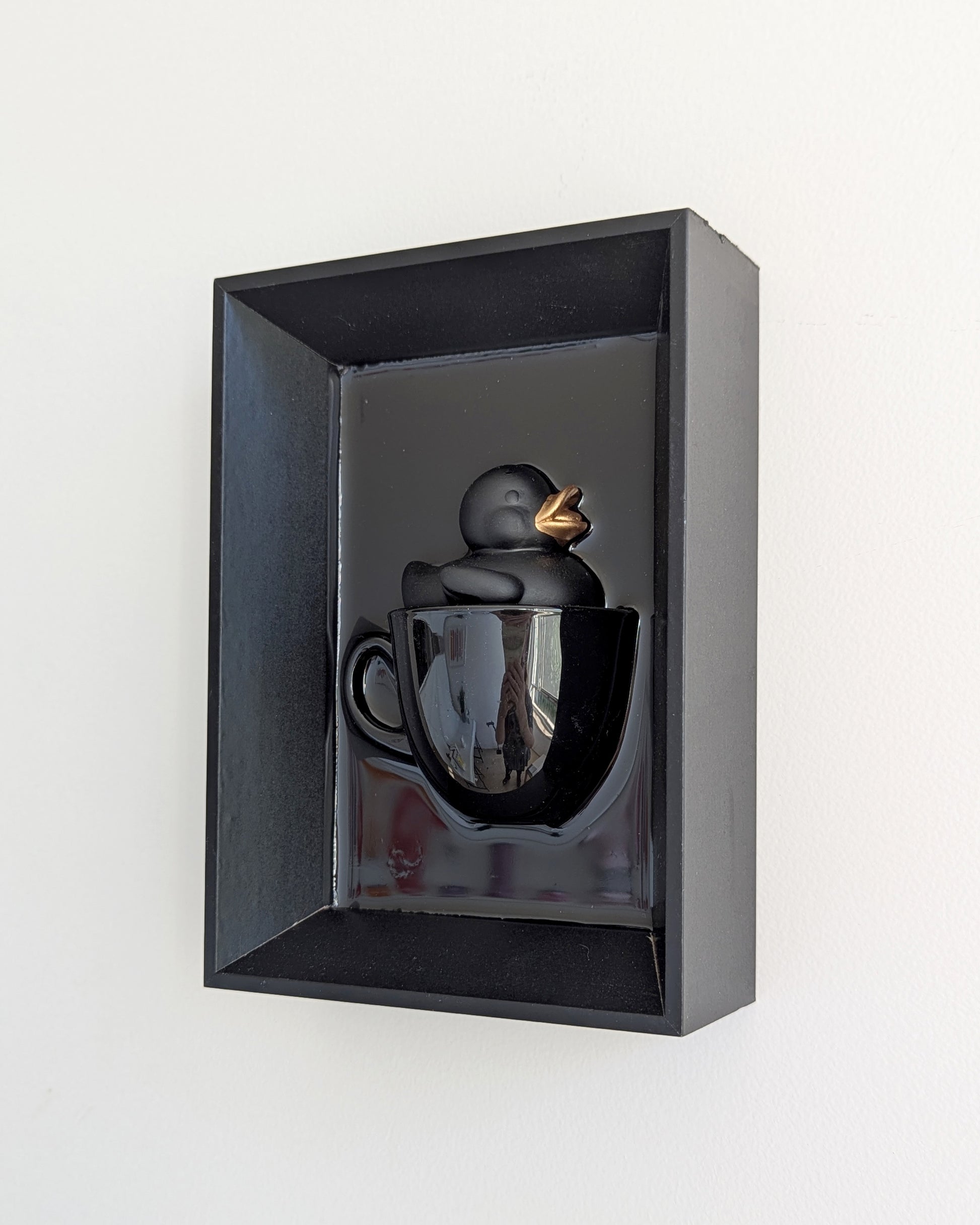 ברווזון בכוס קפה. יצירה שתוסיף נגיעה של שובבות וצבע לכל פינה בבית, במשרד או בכל חלל שתבחרו (גם בחדר האמבטיה), ותגרום לכולם לחייך.
