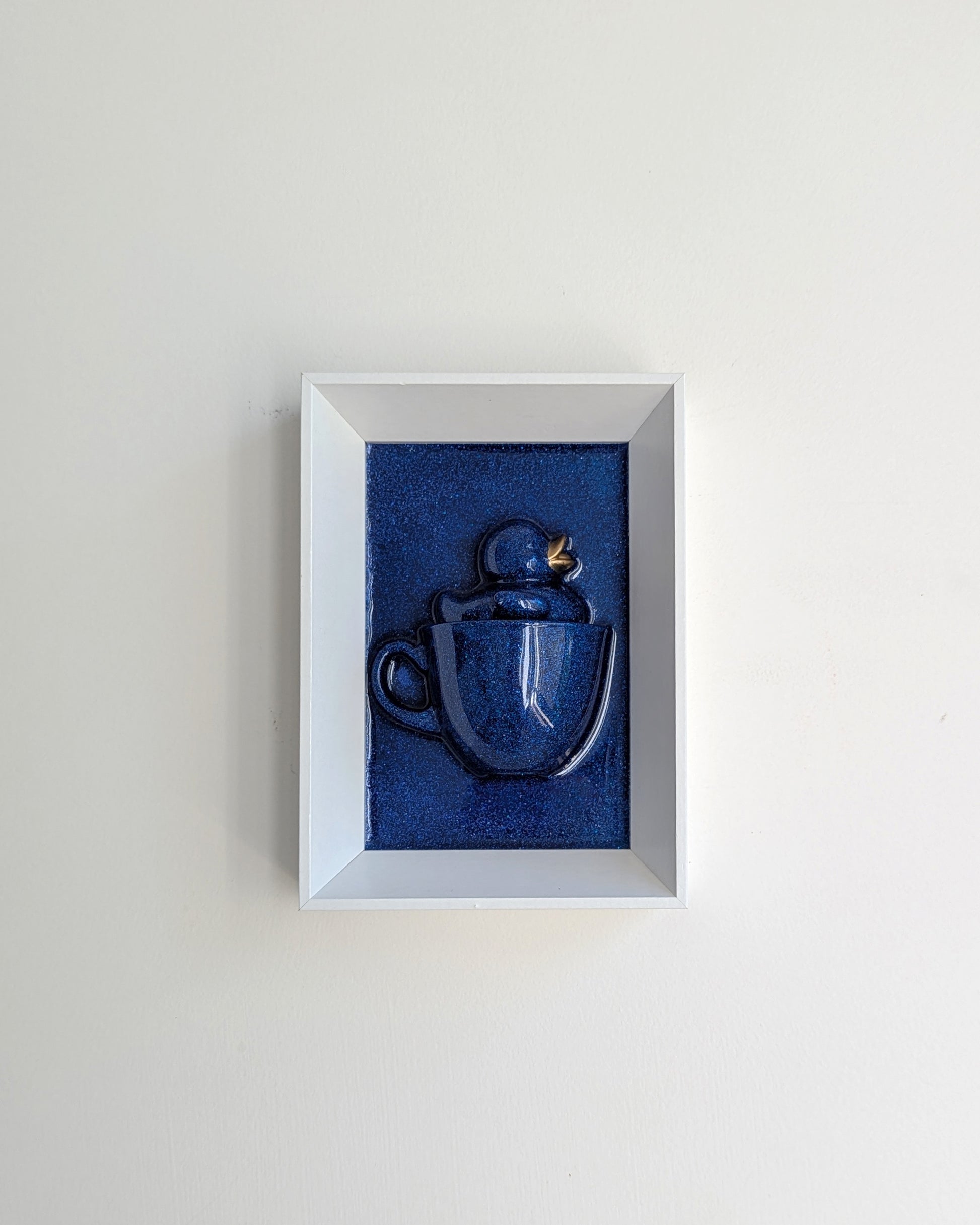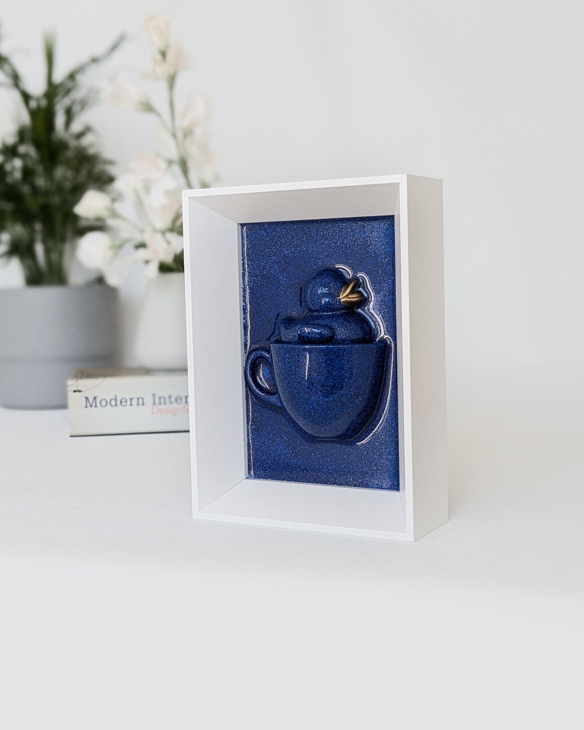 ברווזון בכוס קפה. יצירה שתוסיף נגיעה של שובבות וצבע לכל פינה בבית, במשרד או בכל חלל שתבחרו (גם בחדר האמבטיה), ותגרום לכולם לחייך.