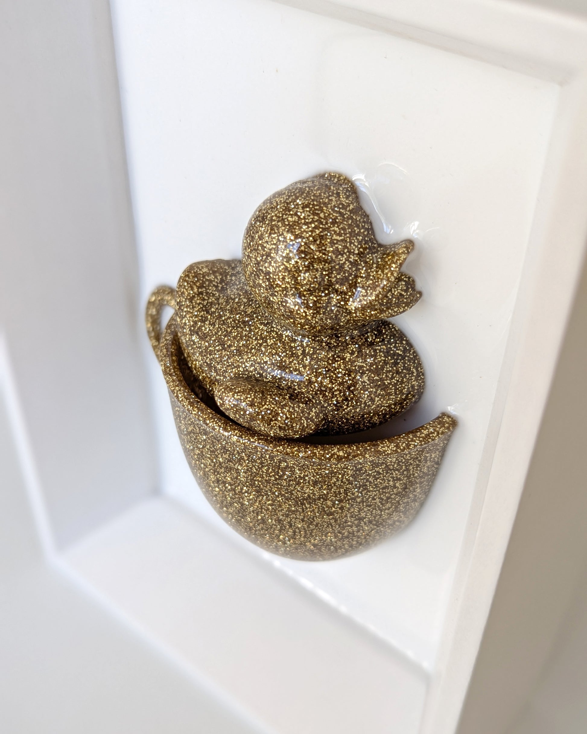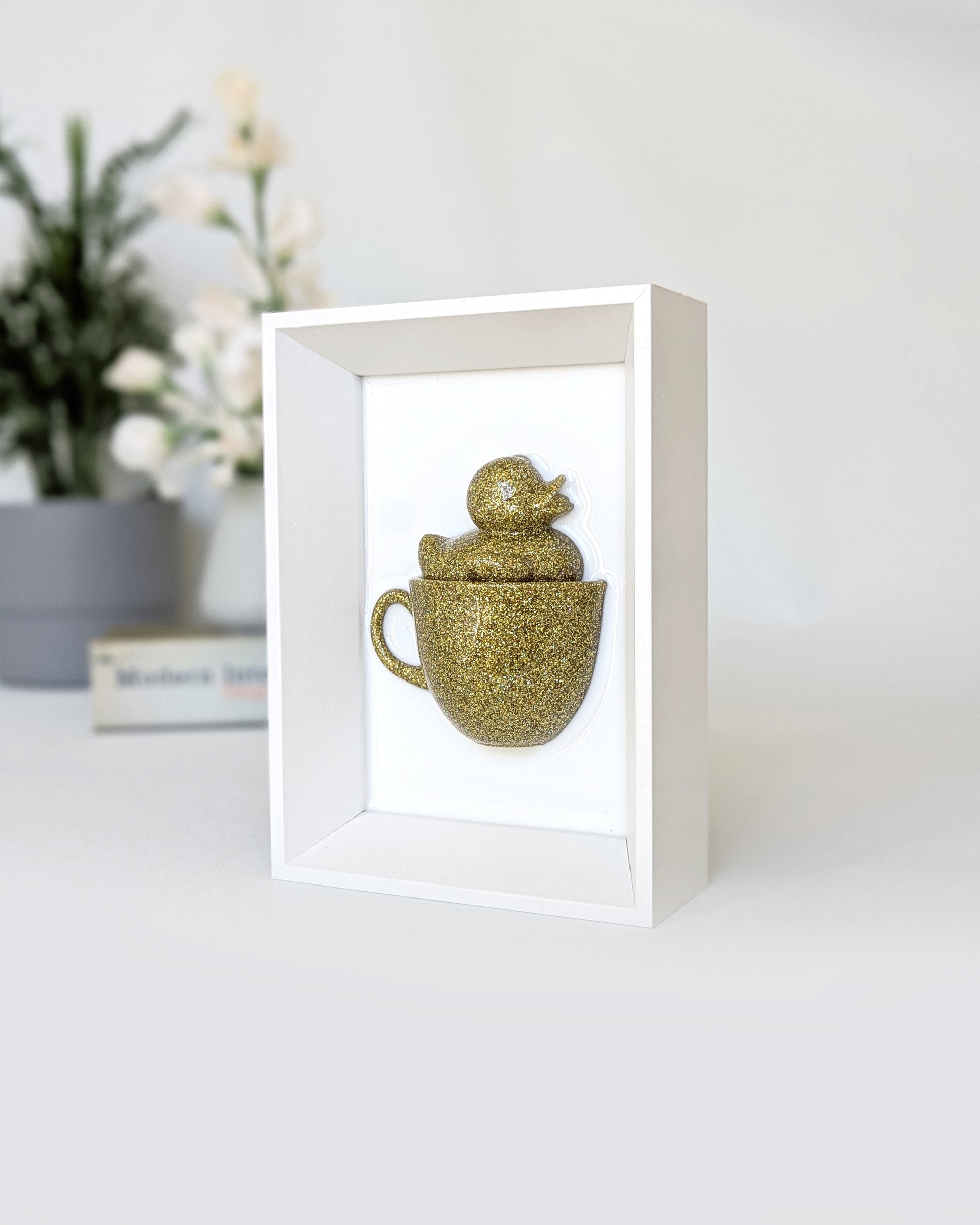 ברווזון בכוס קפה. יצירה שתוסיף נגיעה של שובבות וצבע לכל פינה בבית, במשרד או בכל חלל שתבחרו (גם בחדר האמבטיה), ותגרום לכולם לחייך.