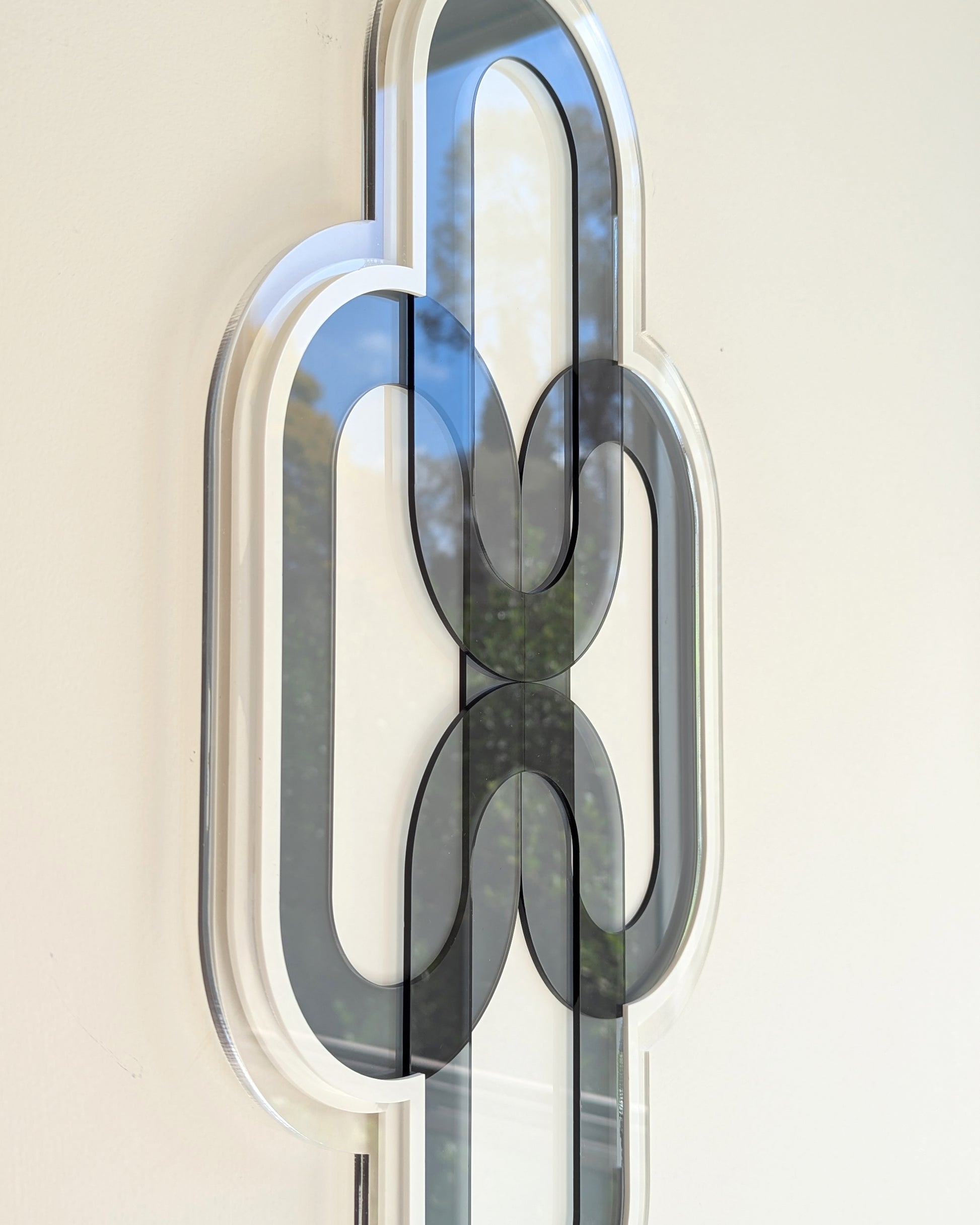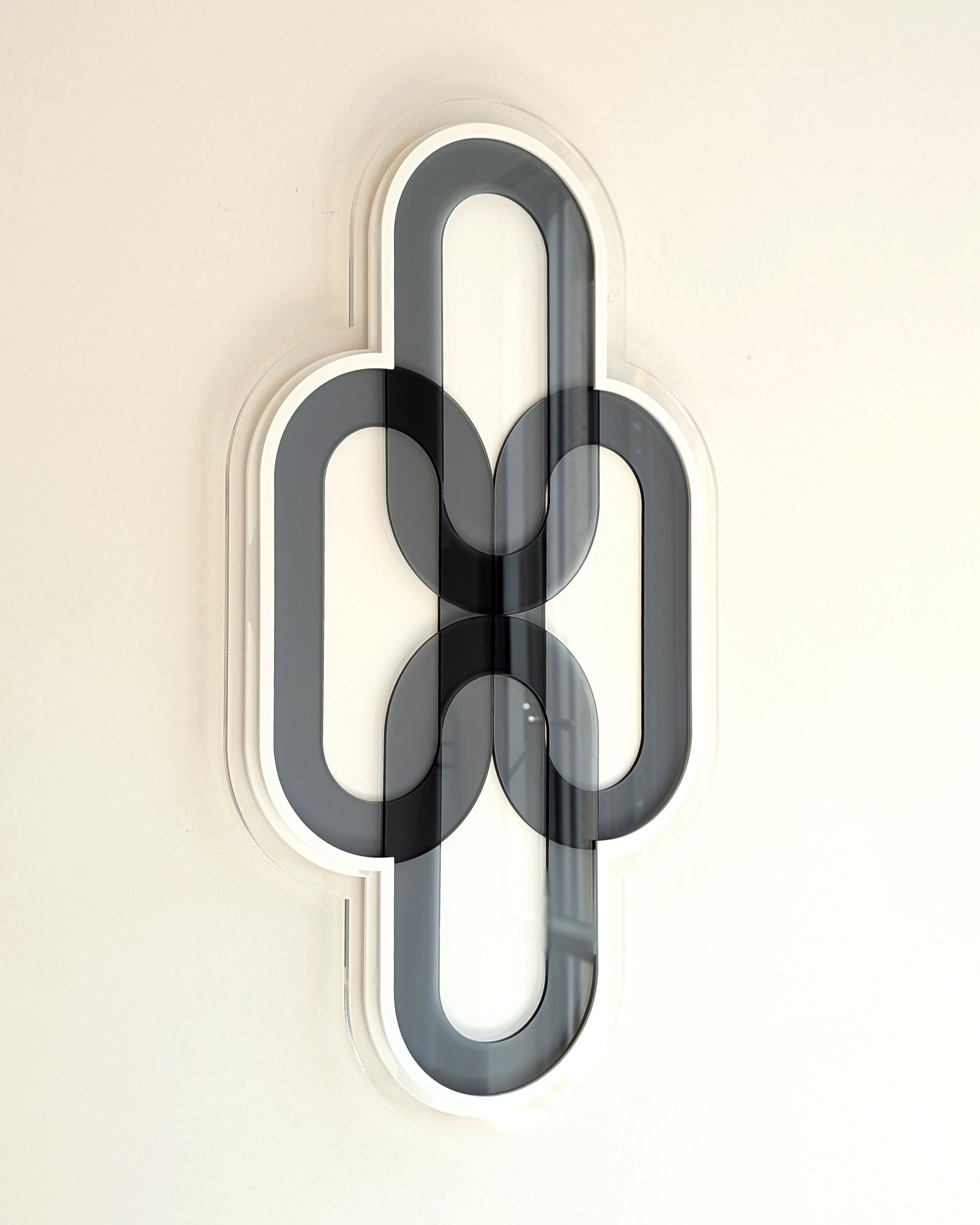 Looking for something bold, modern, and totally original? This Acrylic Geometric Wall Art is a head-turning piece that blends clean lines with a retro-futuristic vibe. Handcrafted with layered acrylic in shades of black, gray, and white, it's the perfect wall decor to add character and dimension to your home.